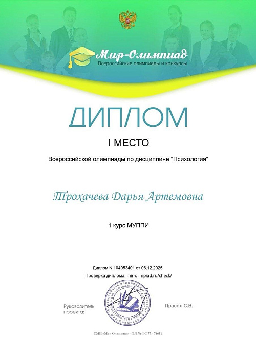 Трохачева Дарья Артемовна - 1 место во Всероссийской Олимпиаде