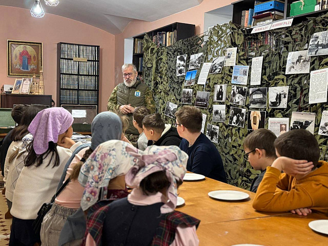 Мероприятие собрало в библиотеке монастыря учащихся воскресных школ «Мариинская» и «Рассвет» при храме Знаменской иконы Божьей Матери деревни Алёшино. Перед ребятами выступил Директор Института патриотического воспитания и молодежной политики МУППИ Кононенко Михаил Ильич.